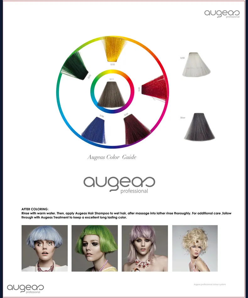 Discover vibrant, long-lasting color with Augeas Professional Hair Color — a permanent color cream infused with intense micro-pigments and wheat proteins to deliver rich tones, deep nourishment, and luminous shine.