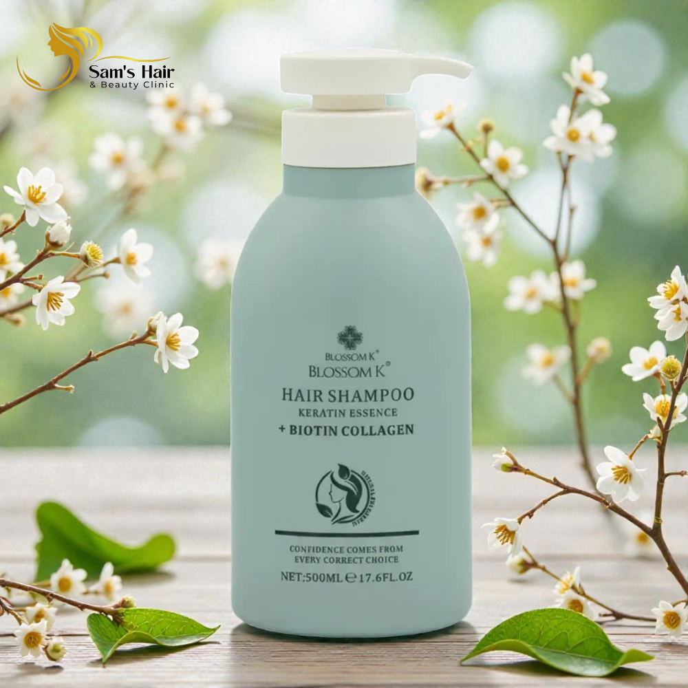 BLOSSOM K Hair Shampoo is enriched with plant-based moisturising factors, proteins, collagen, and amino acids to nourish and repair your hair deeply.